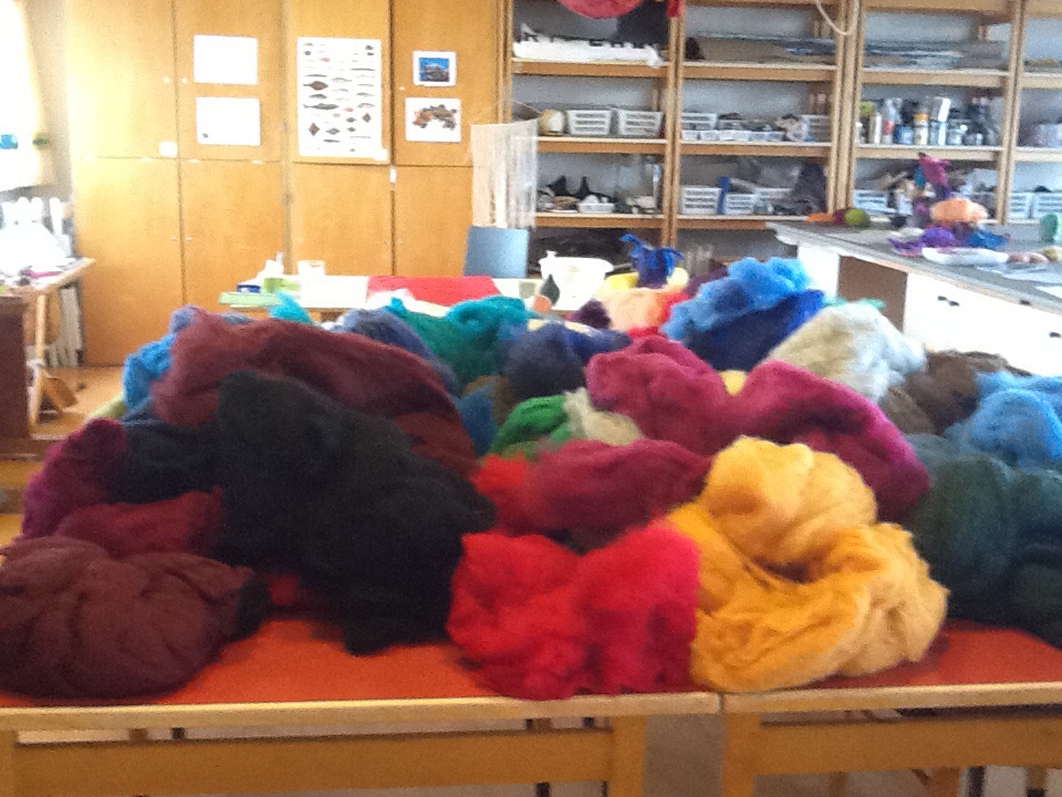 We went on to the town of Skagafjorour where they have a fish tannery, they also tan sheep hides and seal, etc. The fish leather comes in the most delicious colours you have ever seen, I had to buy a couple and then we found the seconds bin and I really had to buy a lot of fish leather. I am going to try it out in my felting, the bright colours and the texture should make some intersting combinations if it stands up to the felting process which I think it should as I know they use some pretty wicked chemicals in the tanning. I think it is the only tannery that works with fish skins which would normally be discarded. This is their website, it was so mich fun to go there.